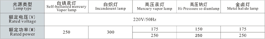 3、可配裝白熾燈、汞燈、高壓鈉燈、金鹵燈。