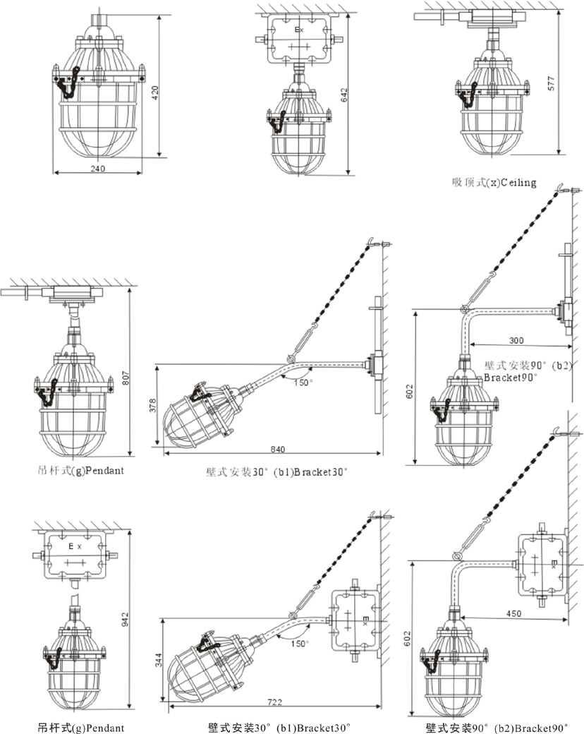 注:可按用戶要求配裝燈傘。