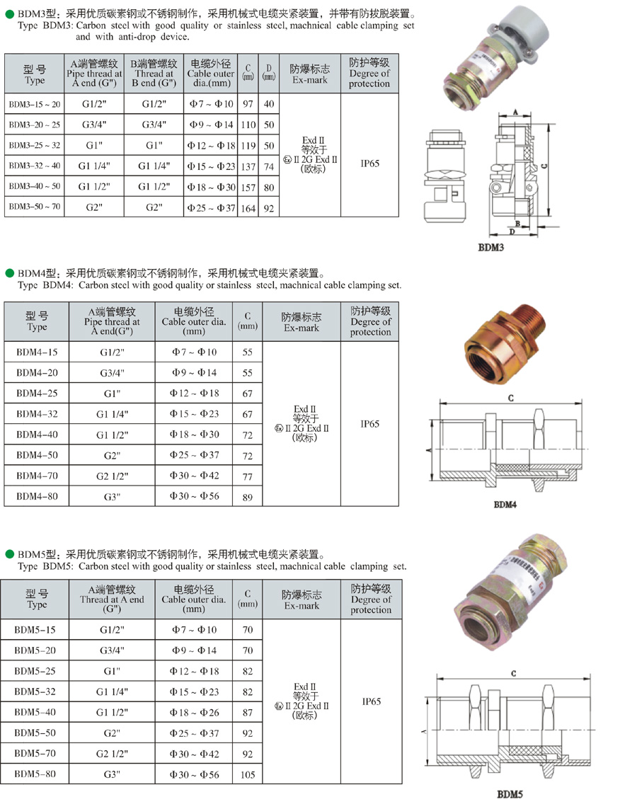 BDM□-系列防爆電纜夾緊密封接頭